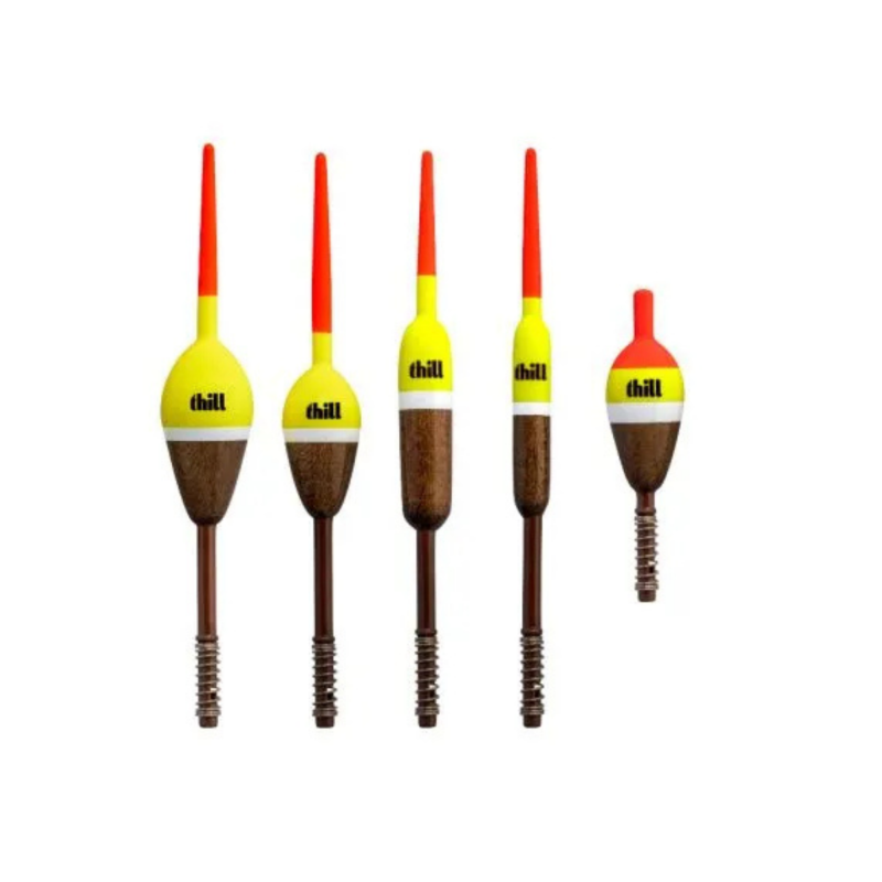 Thill's America's Classic Floats are made with stained wood with fluorescent tops.