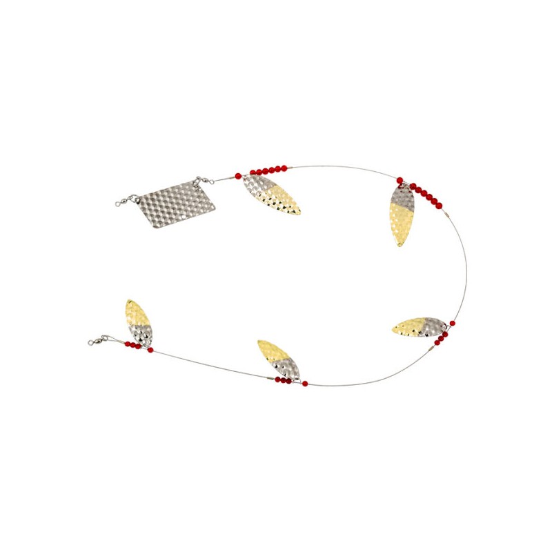 Also Known As Cowbells Or Christmas Tree Troll These Large Bladed Trolls Simulate Small Schools Of Bait Fish. Equipped On 95# Test Stainless Steel Wire With A 3″ Hammered Brass Rudder.