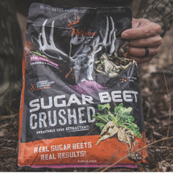 Sugar beets are incredibly effective at attracting deer. The problem is they grow seasonally and only in certain regions, making them hard or even impossible for hunters to find. Wildgame Innovations made the impossible possible with an ultra-concentrated deer feed using real sugar beets. Say hello to the Sugar Beet Crushed attractant family.
