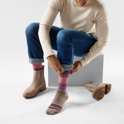 Our Stitch everyday striped sock is all about comfort, durability, and style. Featuring a precise fit for long-lasting comfort, this sock is made with ethically sourced merino wool, which naturally provides softness, odor control, and temperature regulation. It's also designed with a Virtually Seamless™ toe and Shred Shield™ technology for comfort that lasts and lasts. And it's all finished off with an eye-catching stripe and polka dot pattern that helps you break away from the everyday.
