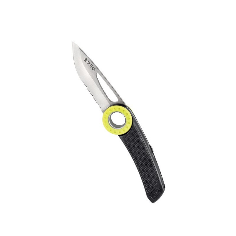 Le couteau clippable SPATHA est conçu pour accompagner le grimpeur à chaque sortie. Le profil de la lame permet de couper facilement les cordes et les cordes. Il a un trou mousqueton pour fixer le couteau au harnais. Il est facile à manipuler avec sa roue texturée, même avec des gants, et peut être verrouillé en position ouverte.