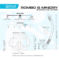 Rombo est un masque sans cadre qui possède un faible volume interne, ce qui le rend excellent pour l'apnée, le snorkeling et/ou la pêche sous-marine. Le design spécifique utilise l'assemblage de la jupe en silicone directement sur le verre trempé simple. Ce système garantit une solidité exceptionnelle et une étanchéité parfaite. La jupe en silicone souple promet en outre une étanchéité idéale associée à un confort maximal. Le faible poids du masque le rend idéal pour les bagages et les voyages. La flexibilité et la réduction de la traînée en font un excellent choix pour l'apnée, la plongée en apnée et/ou la pêche sous-pique. Les boucles ajustables micrométriquement sont confortables et efficaces, rendant l'ajustement rapide et facile du Rombo. Le Mini Dry est une version du modèle Dry pour enfants. Le Mini Dry Snorkel a une extrémité anti-éclaboussures d'origine avec une valve spéciale qui scelle le tube pendant la plongée, empêchant presque totalement l'entrée de l'eau lorsque le tuba est immergé. L'extrémité inférieure a une partie ondulée lisse à l'intérieur qui garde le tuba éloigné de la bouche lors de l'utilisation d'appareils respiratoires. Une coupe spéciale de collecte d'eau, avec une grande valve de décharge elliptique, permet d'expulser l'eau rapidement et facilement.