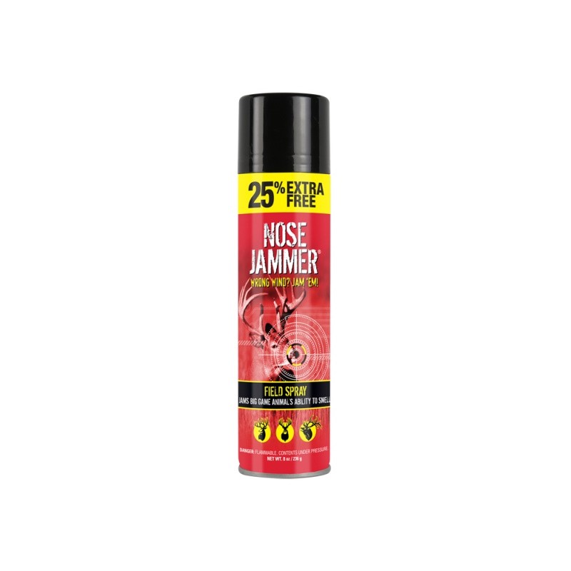 Nose Jammer crée un nuage autour de vous qui bloque la capacité du gros gibier à détecter et suivre les odeurs humaines. Le Nose Jammer doit être vaporisé sur les vêtements, bottes, supports d'arbre, stores et broussailles. Quand le vent tourbillonne, les bestioles sont enfermées et elles ne s'alarment pas. Le vaporisateur Nose Jammer Field est le plus efficace lorsqu'il est utilisé en combinaison avec le reste de la gamme de produits Nose Jammer. Ça marche sur tous les animaux qui ont un nez!