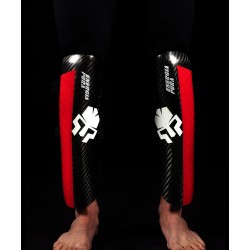 Protège-jambes en carbone, ultra-léger et résistant. Elle peut être corrigée avec des élastiques ajustables avec des velcros. Fait d'une combinaison de résines époïdiques à haute résistance aux chocs. Projeté avec un système aérospatial et produit en autoclave, cet article est testé en collaboration avec diverses équipes nationales et utilisé par les athlètes de la Coupe du monde, car il possède une forme spéciale avec des éléments embossés qui améliorent l'aérodynamisme et réduisent la friction. Ce produit est utilisé par les athlètes des équipes nationales suivantes : équipe italienne, autrichienne, française, norvégienne, slovène, espagnole, suisse et d'Andorre