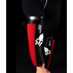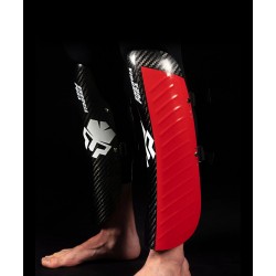 Protège-jambes en carbone, ultra-léger et résistant. Elle peut être corrigée avec des élastiques ajustables avec des velcros. Fait d'une combinaison de résines époïdiques à haute résistance aux chocs. Projeté avec un système aérospatial et produit en autoclave, cet article est testé en collaboration avec diverses équipes nationales et utilisé par les athlètes de la Coupe du monde, car il possède une forme spéciale avec des éléments embossés qui améliorent l'aérodynamisme et réduisent la friction. Ce produit est utilisé par les athlètes des équipes nationales suivantes : équipe italienne, autrichienne, française, norvégienne, slovène, espagnole, suisse et d'Andorre
